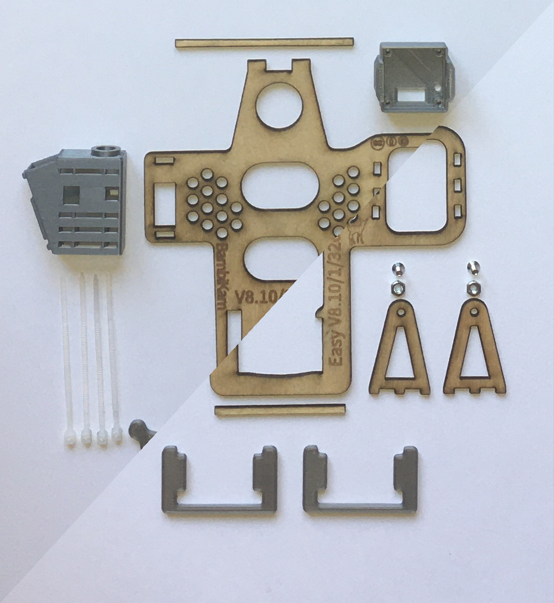Sie erhalten einen Bausatz, welcher alle Einzelteile enthält, um das Grundgerüst für die Aufhängung selber zu bauen.